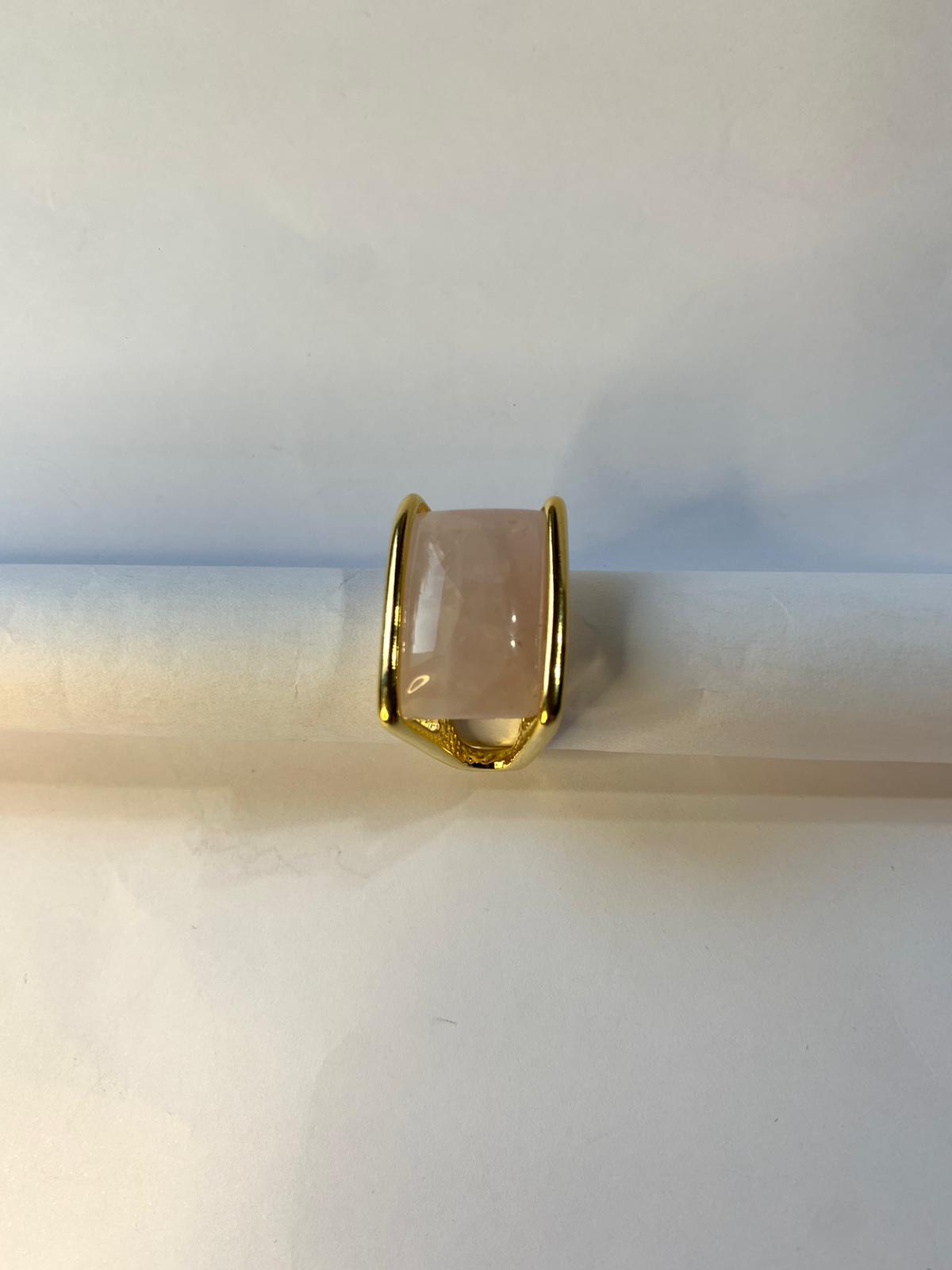 -El Cuarzo Rosa envuelve tu energía en ternura y el baño en oro realza su luz cálida.