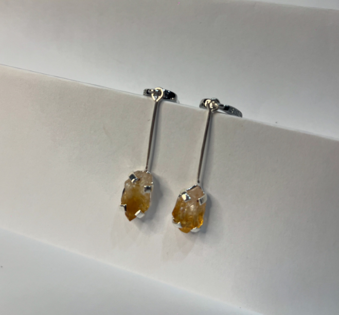 Caravanas en Plata y Citrino, perfectas para darle un toque a tu look en una ocasiĂ³n especial. Delicadas y elegantes