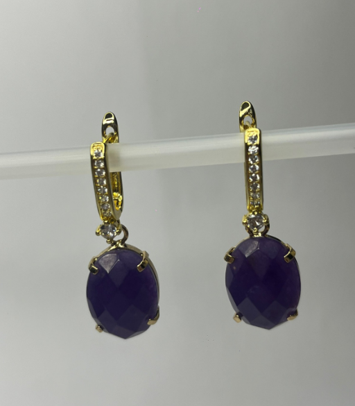 -Bañadas en oro y adornadas con una piedra de tono violeta profundo, estas caravanas irradian elegancia y magia. Su brillo sutil realza la luz natural de la gema, creando un accesorio delicado pero lleno de presencia. Un toque sofisticado para iluminar cualquier look. âœ¨đŸ’œ