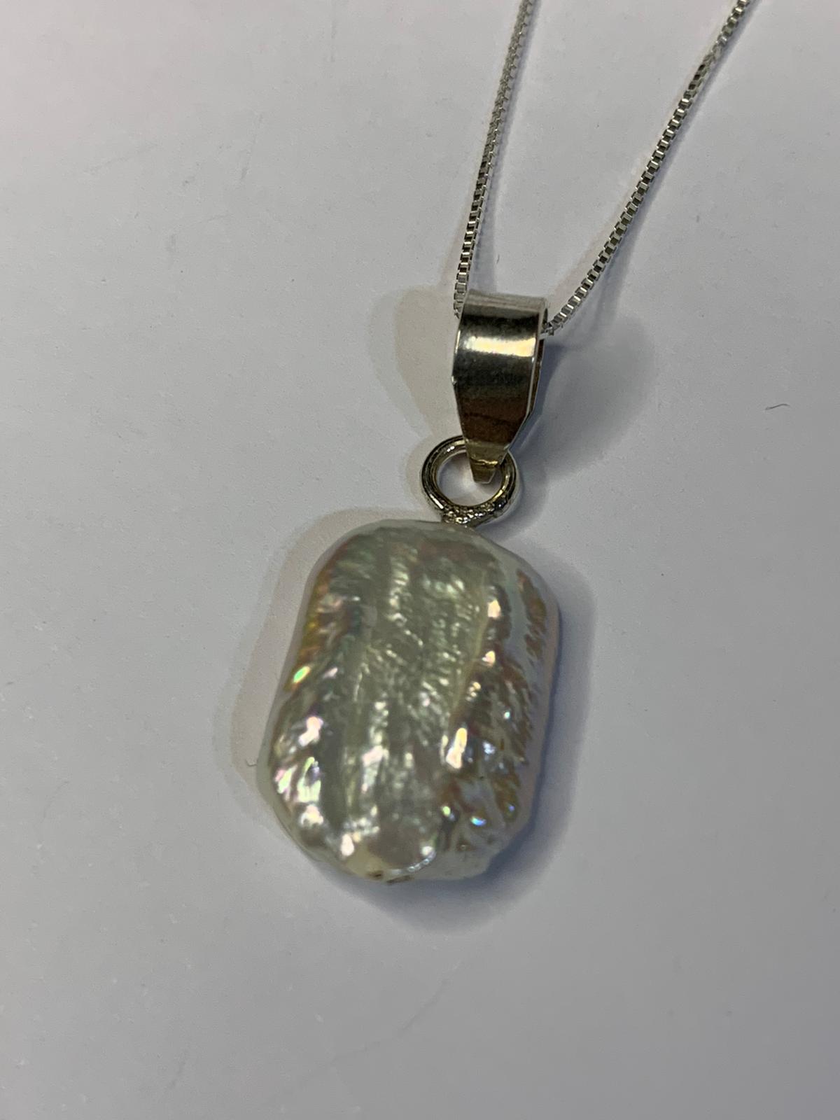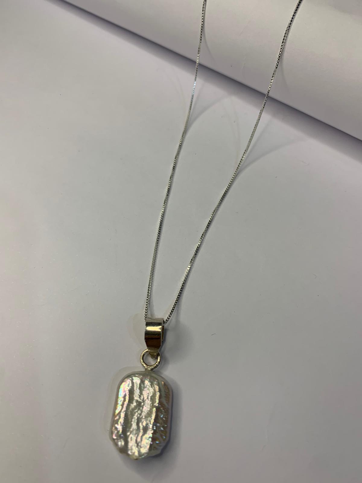 Conjunto de Cadena, dije y caravanas en perla natural y Plata 925