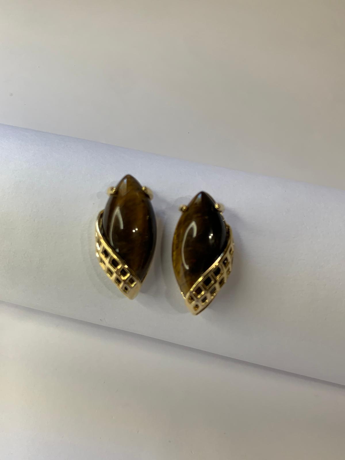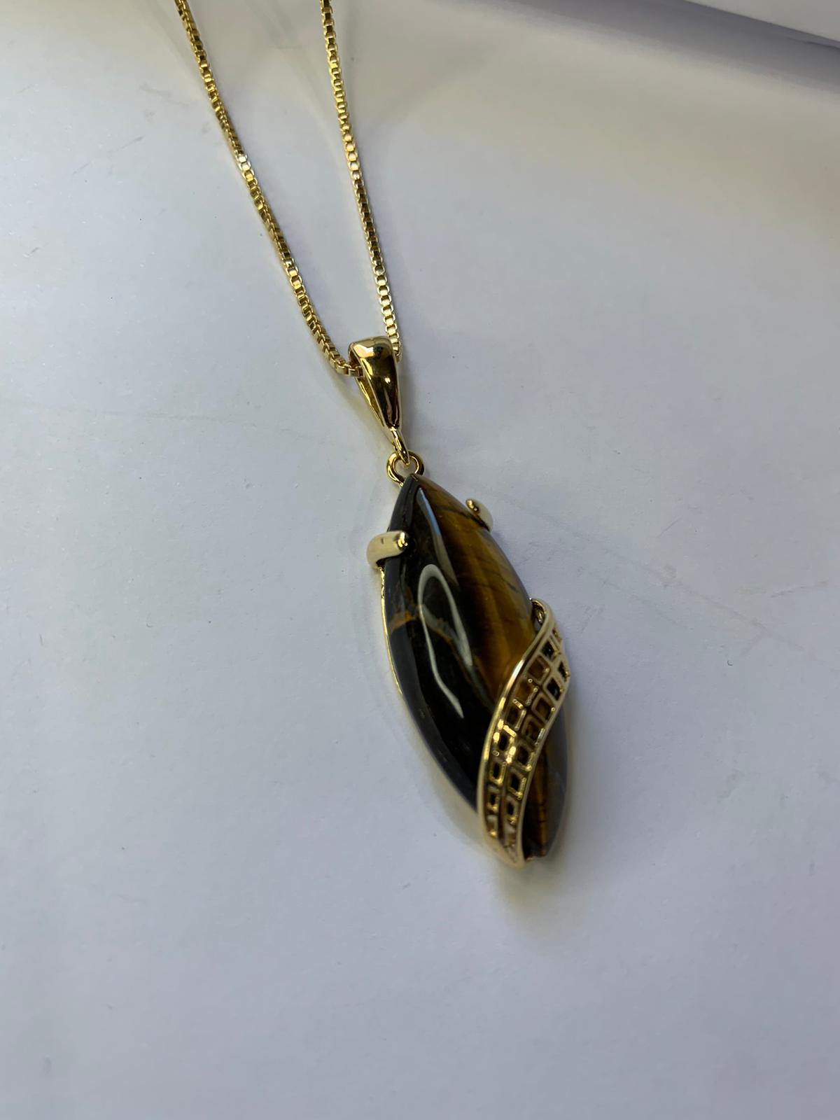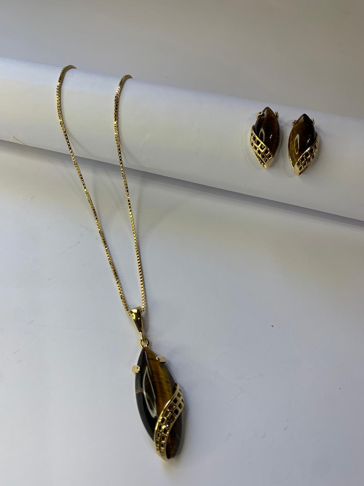 Cadena, dije y caravanas en ojo de tigre y baño en oro