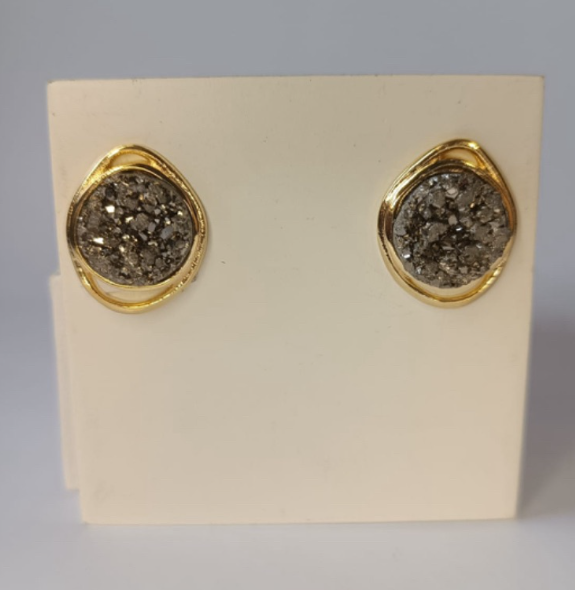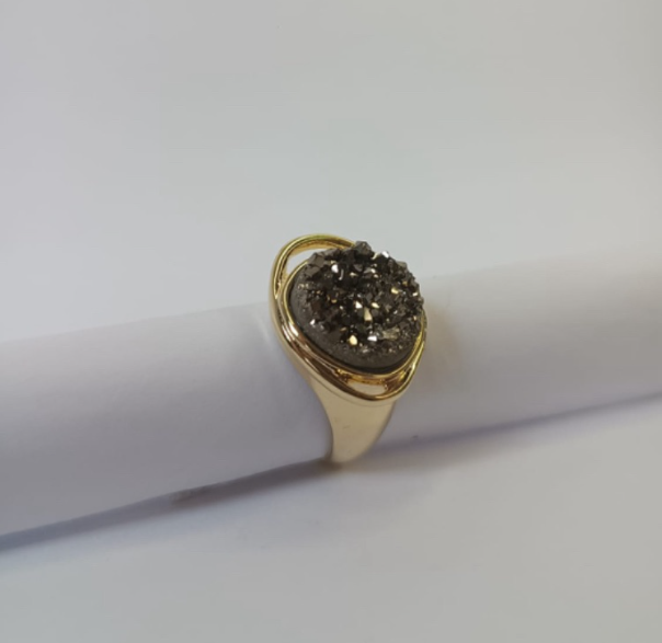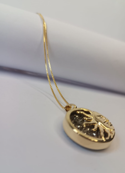 Conjunto en baño de oro y drusa, con dijes de sol y luna: Collar, Anillos y Caravanas
