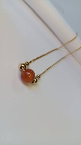 -La elegancia del baño en oro se une a la energía cálida de la ágata, piedra de equilibrio, fortaleza y protección.