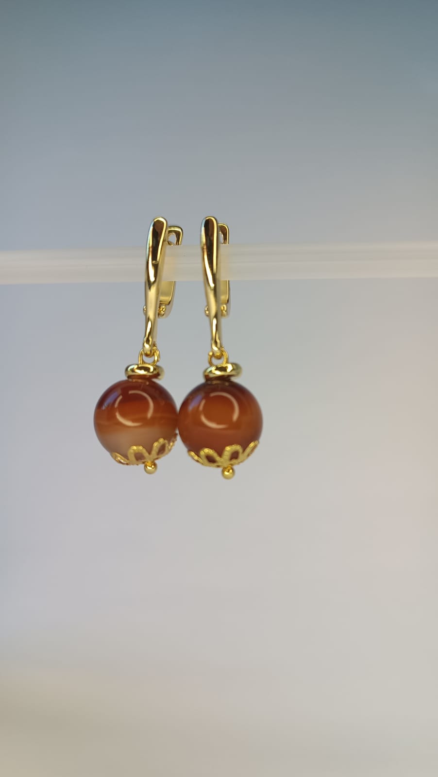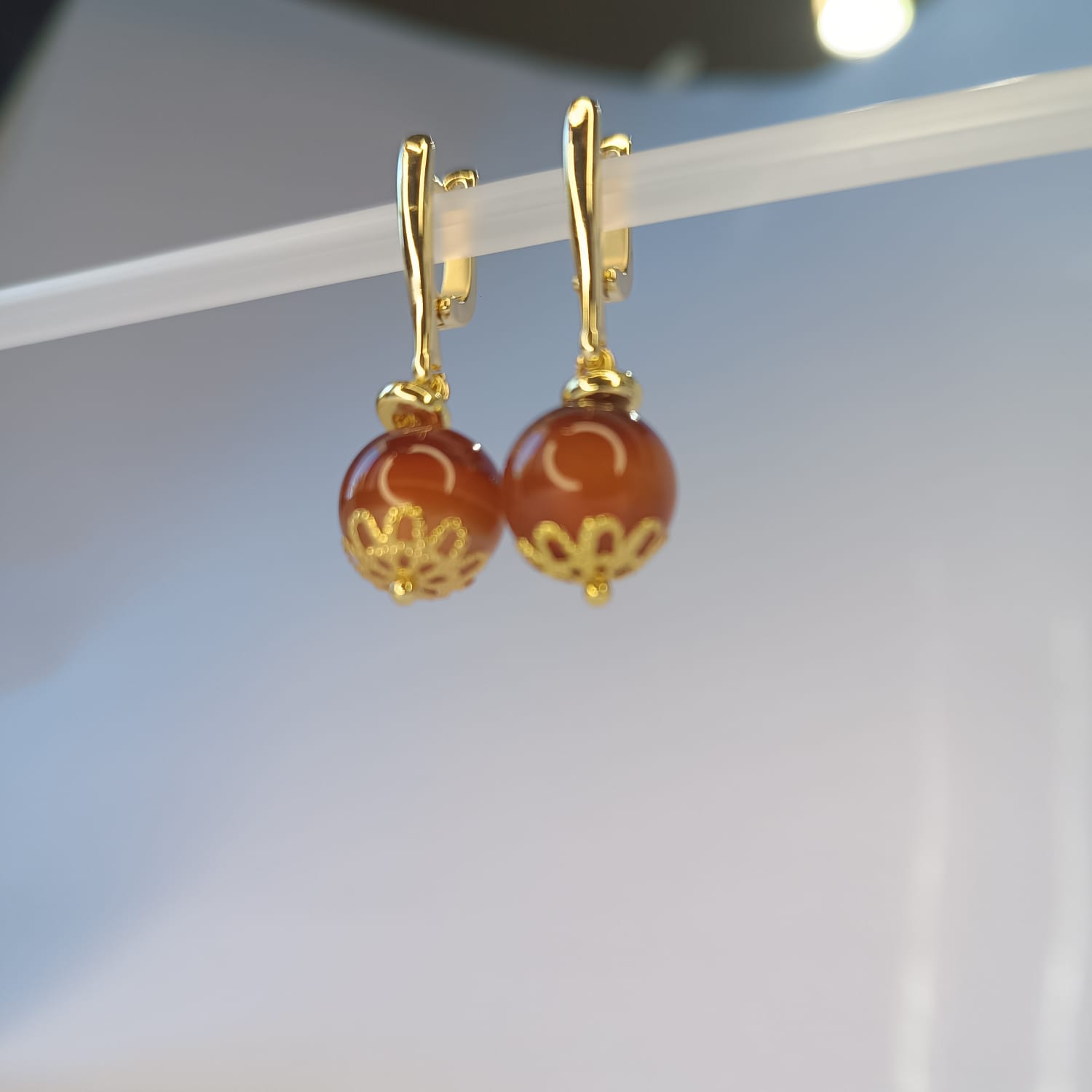 Conjunto en baño de oro con piedra ágata: Collar y Caravanas
