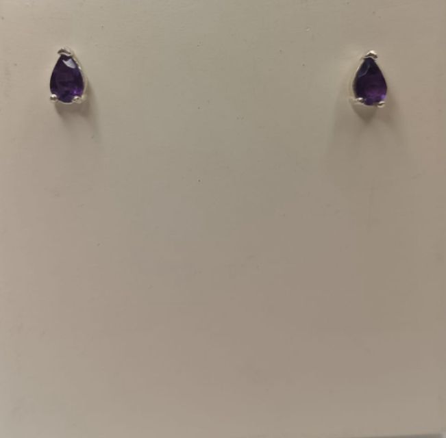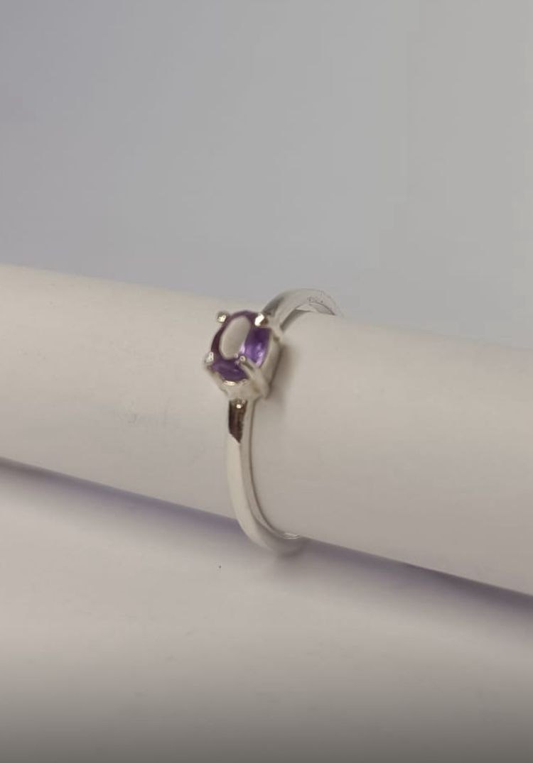 Conjunto en plata 925 y amatista: collar, caravanas y anillo